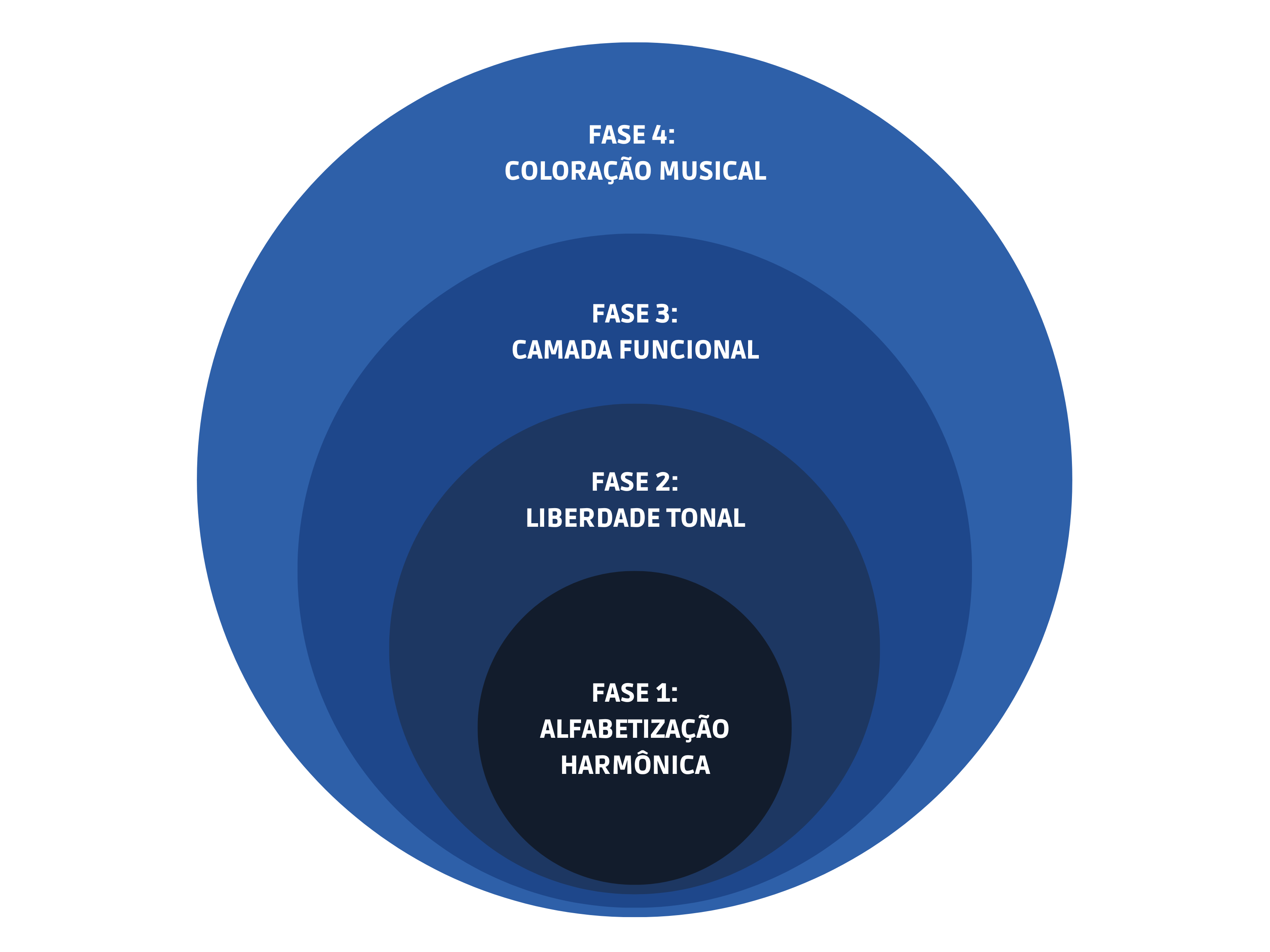 O curso é dividido em 4 módulos sequenciais com exatamente o que você precisa para dominar os campos harmônicos de forma clara e prática, sem enrolação nem teoria que só atrapalha.