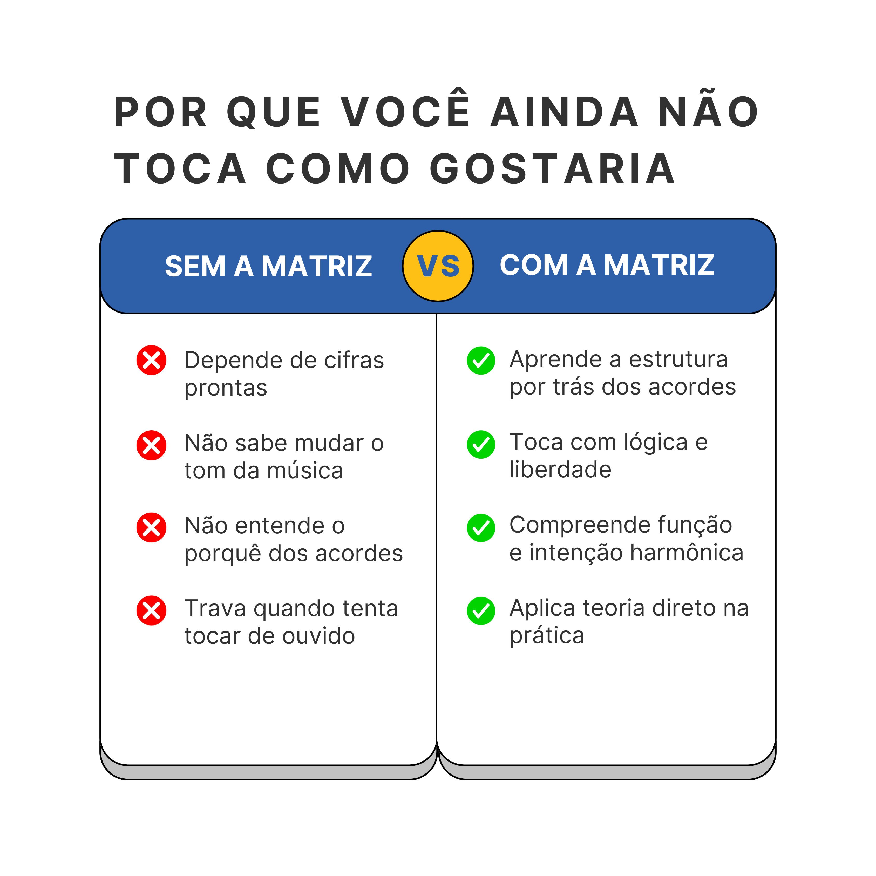 Foi assim que criei a Matriz da Consciência Musical: uma jornada prática e progressiva para quem quer sair do básico e tocar com clareza, intenção e personalidade.